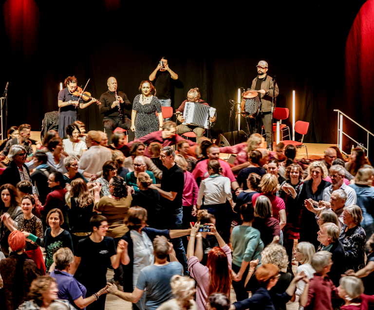 Gemeinsames Tanzen zu Live-Musik von Dobranotch
